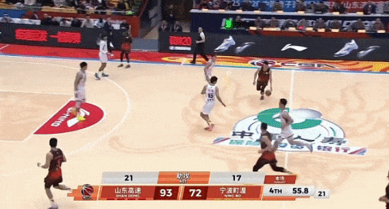 4、克里斯持球推进,分球弱侧跟进的王证,追身三分出手命中