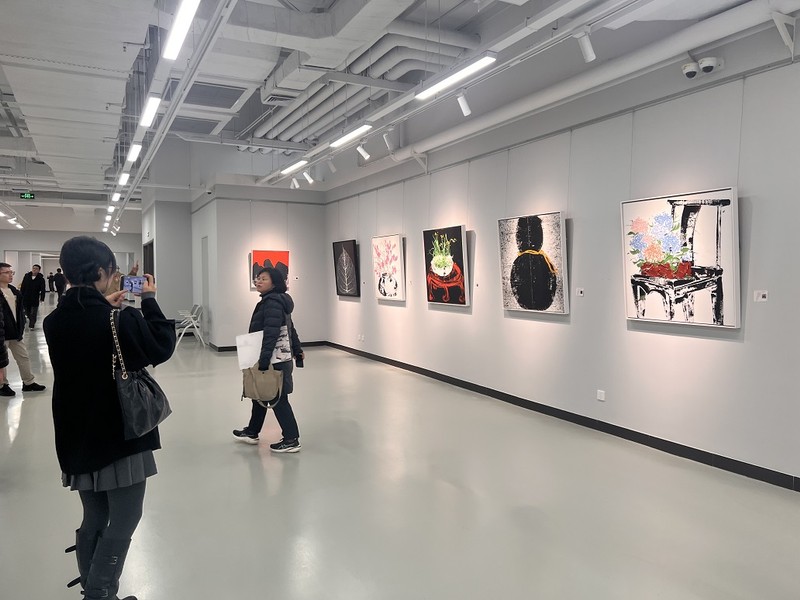 开幕式后,嘉宾们在工作人员引领下从右侧通道移步展厅观展,展厅内还备有精致茶点,让观众在艺术享受中感受闲适。此次展览为大众提供与艺术深度对话的平台,也将推动当代油画艺术与东方美学的传承与创新。