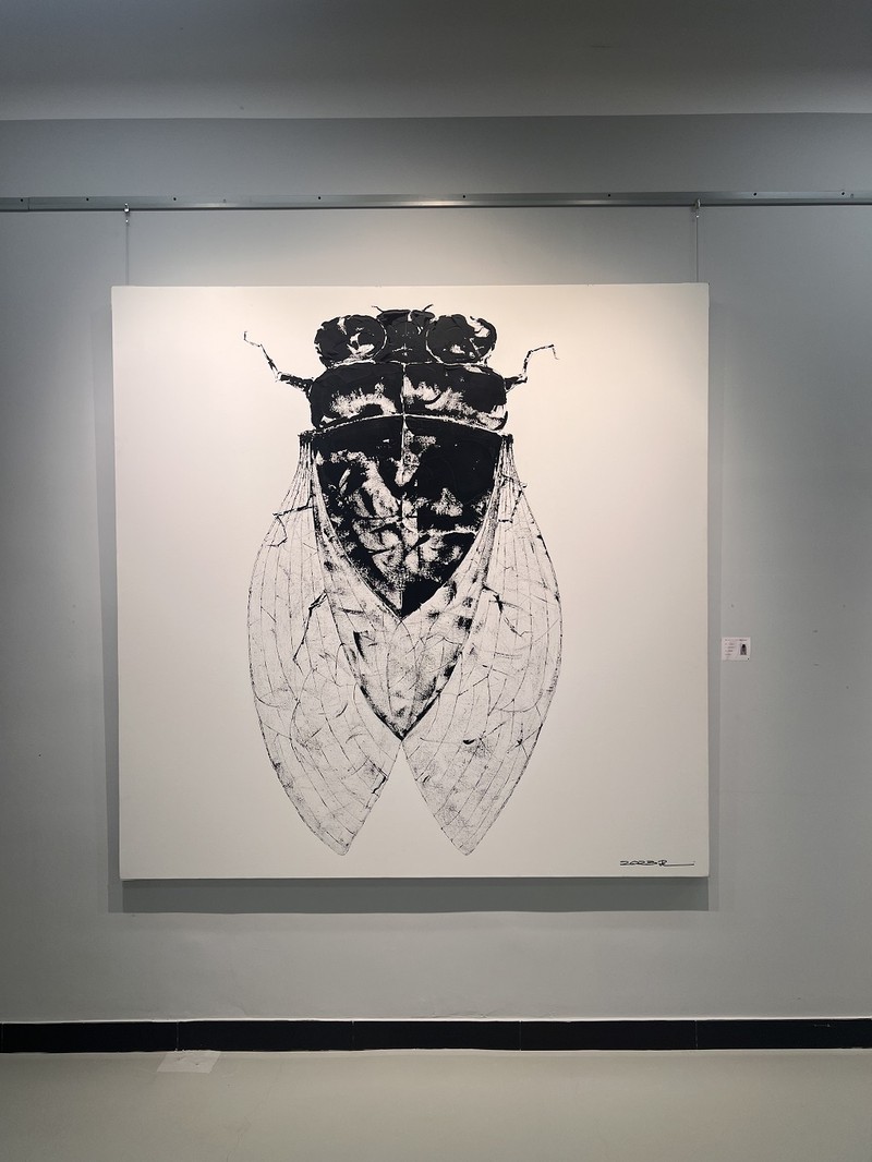 据介绍,此次展览呈现刘北光教授数十载艺术积淀,作品兼具设计理性与绘画感性、东方禅意与当代视觉冲击。“山外山” 系列以疾驰笔意与沉稳山体营造 “势态之美”,展现 “外师造化,中得心源” 的精神;“昆虫系列” 用深邃玄色与画刀皴擦的质感,搭配昆虫眸中的生机,演绎 “天地玄黄” 与 “宇宙洪荒” 的对话,升华空灵禅境;“丰盛” 与 “器” 系列融合设计 “空间章法” 与文人画 “笔意墨韵”,在纯粹色域间构建东方美学韵律。