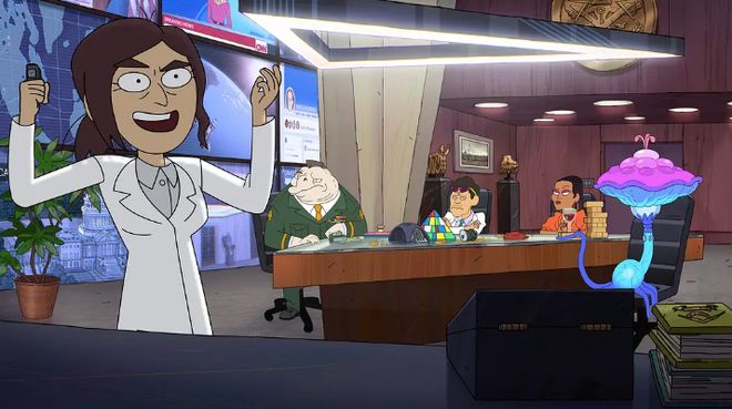 《阴谋职场》杂糅了欧美互联网的各种政治经济娱乐梗,致敬了非常多的影视作品,讽刺了大量的阴谋论,完全是由梗组成的动画。脑洞大开的阴谋论搭配女主角细腻的成长,你很少能看到一部动画以三十岁的女性作为主角,很大胆,又很有趣。剧作规整、吐槽到位,神秘组织、变化莫测的国际政局、全球变暖、退伍老兵等话题在本漫里都被戏谑成了一团很美漫风的社区单元。