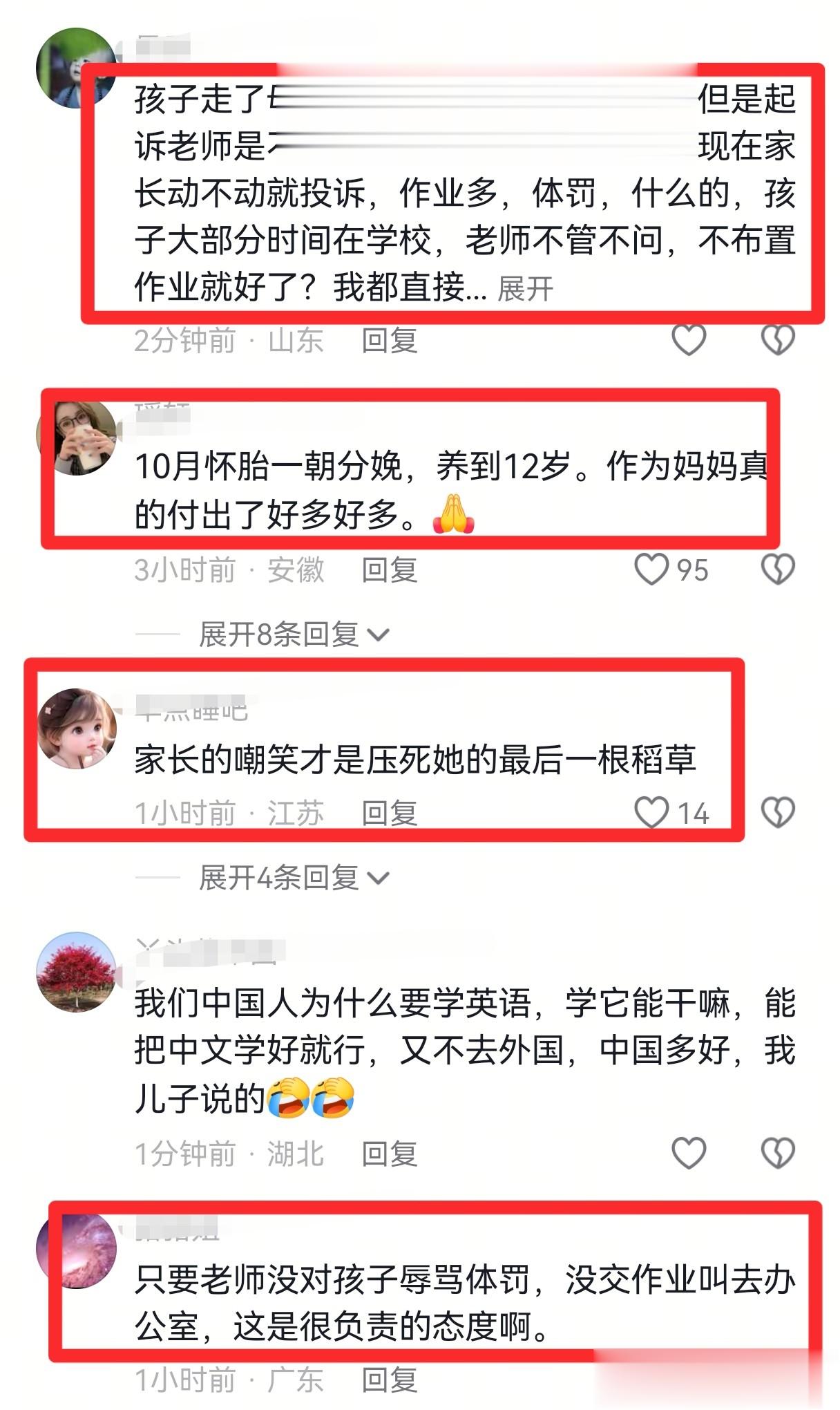发生这样的悲剧,是令人十分痛心的。妈妈的这一句话,大家应该都能听懂,妈妈把责任都归咎到了英语老师以及学校上。