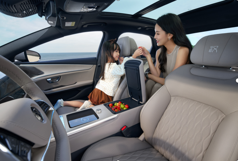 新车着眼于家庭出行的真实场景,深度整合的智能生态尤为亮眼,与好孩子智能儿童安全座椅、宠物安全座、倍轻松智能眼罩及影石Insta360运动相机等深度联动,为车主及家人的舒适与安全保驾护航。