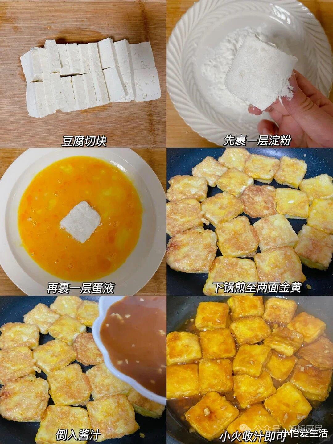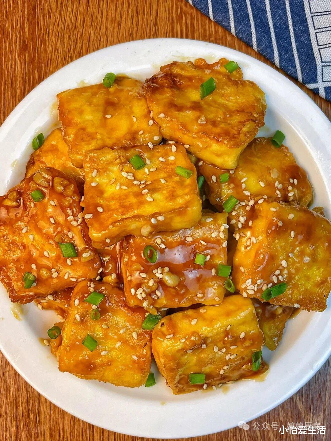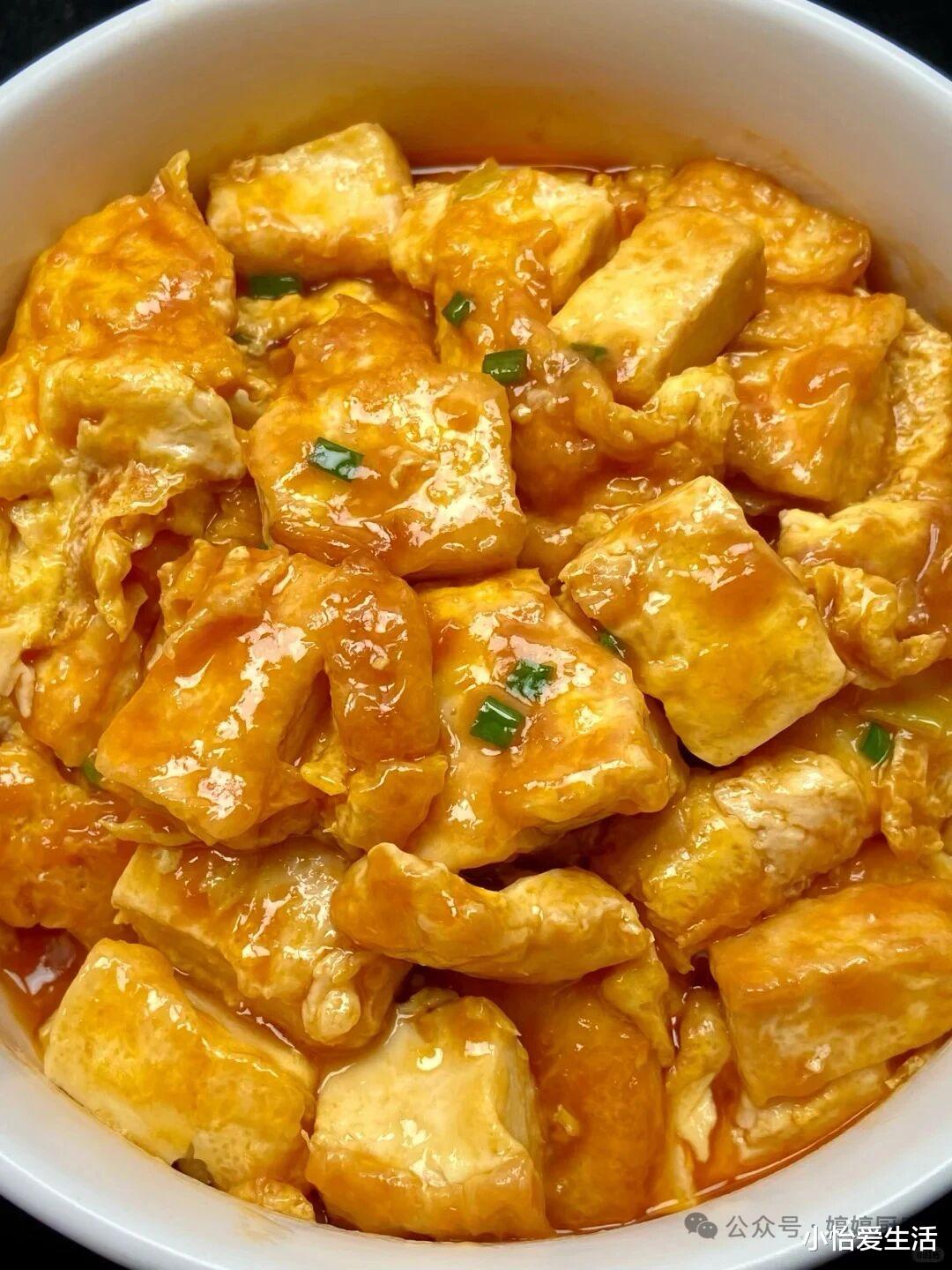 外酥里嫩、咸香入味,妥妥的下饭硬菜。这道菜的起源和南方的小吃文化有关,早年南方街边小摊上,摊主会把豆腐煎至金黄,淋上秘制酱汁,成为受欢迎的街头美食,后来慢慢走进家庭餐桌。做法看似复杂,其实掌握技巧就能轻松搞定:老豆腐(北豆腐)切成厚约1厘米的方块,用厨房纸吸干表面水分(脆皮关键第一步);碗中调一个万能裹粉:2勺玉米淀粉+1勺面粉+少许盐和胡椒粉,加清水搅拌成浓稠适中的面糊;把豆腐块裹上一层薄面糊,锅中倒油,油温烧至六成热(筷子放入冒小泡),放入豆腐块,中小火煎至四面金黄酥脆,捞出控油;另起锅,倒入1勺生抽、1勺蚝油、半勺白糖和少许清水,煮成酱汁,淋在煎好的豆腐上,翻炒均匀让豆腐裹满酱汁即可。技巧要点:豆腐一定要选老豆腐,水分少更易煎脆;裹粉不能太厚,否则会影响口感;煎的时候别频繁翻动,一面煎定型再翻面,这样外皮才够酥脆,内里依旧软嫩,一口下去外脆里嫩,酱汁浓郁,配米饭能多吃两碗!