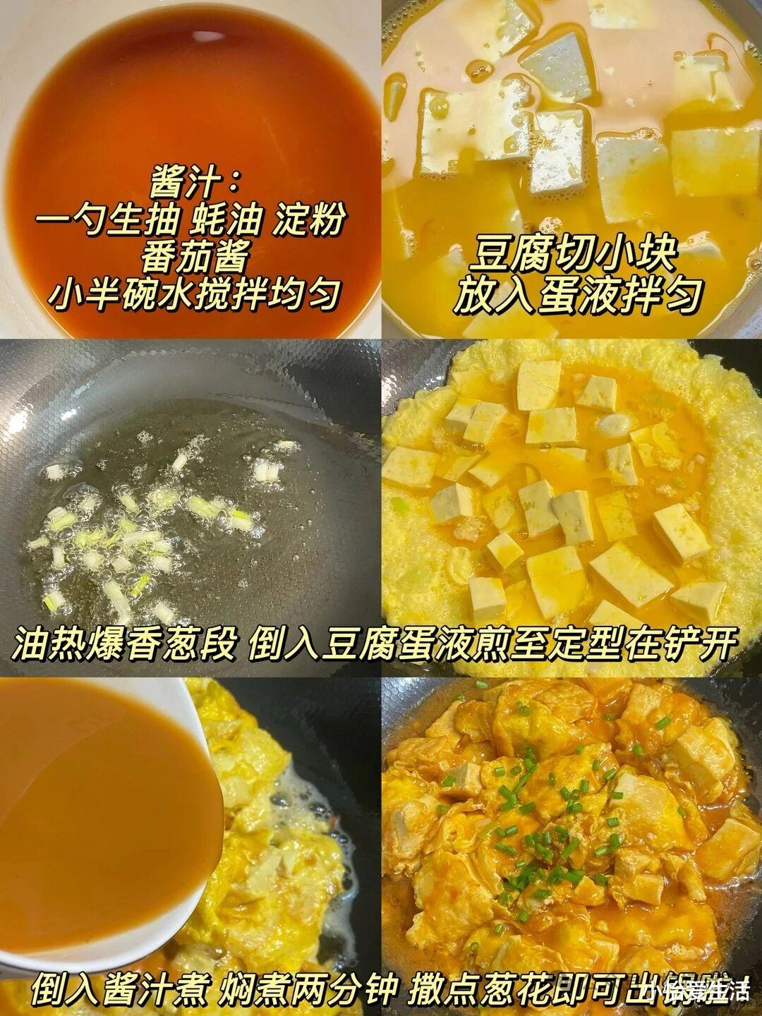 软嫩的豆腐裹着金黄的蛋花,一口下去蛋香与豆香交融,别提多满足了。这道菜的由来特别有意思,相传是一位主妇做饭时,不小心把打散的鸡蛋液倒进了炒豆腐的锅里,没想到意外碰撞出美味,后来就流传开来,成了一道经典家常菜。做法也超简单,技巧全在“抱”得紧实上:嫩豆腐切成2厘米见方的小块,用淡盐水浸泡10分钟(防碎小秘诀);3个鸡蛋打散,加少许盐和一勺清水搅匀(鸡蛋更蓬松);锅中放少许油,油热后放入豆腐块,小火慢煎至表面微焦,倒入蛋液,转中火快速翻炒,让蛋液均匀裹住豆腐,撒上葱花和少许白胡椒粉,翻炒30秒就能出锅。这里的关键是蛋液下锅后别着急翻动,等底部凝固再轻轻推散,才能形成“蛋抱豆腐”的完美状态,软嫩中带着一丝焦香,老人小孩都爱吃。