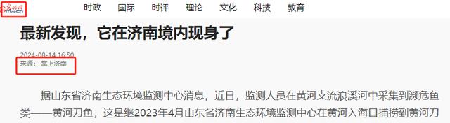 2024年8月14日,光明网报道,人们在黄河流域济南境内发现了“消失”30年的黄河刀鱼。