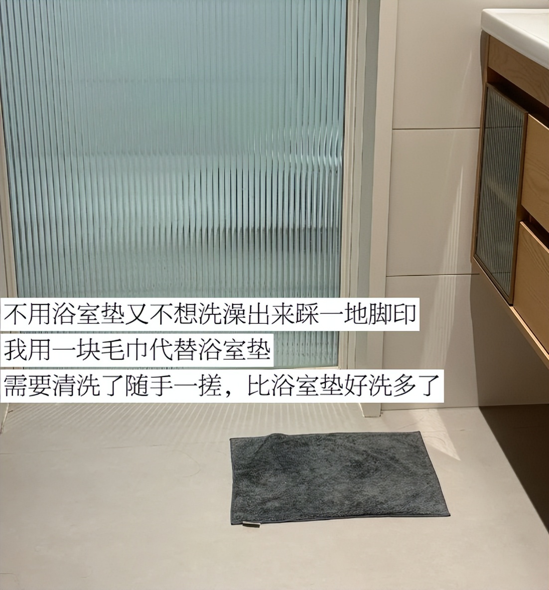 放在玄关门口的脚垫、放在卫生间门口的硅胶垫子、就连床边也要放个床边毯、客厅要放一个地毯、厨房灶台啊、洗手台啊,都要放垫子。