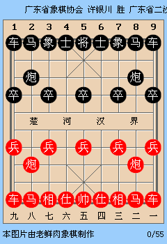 岭南双雄时隔数年再度同台竞技,许银川执先,两人对兵散手开局。从棋局发展的进程来看,面对许银川的拐角马阵型,吕钦缺乏有效的应对方案,开局十四个回合,红棋的拐角马顺利腾挪到象肩的好位置上,空间优势明显。