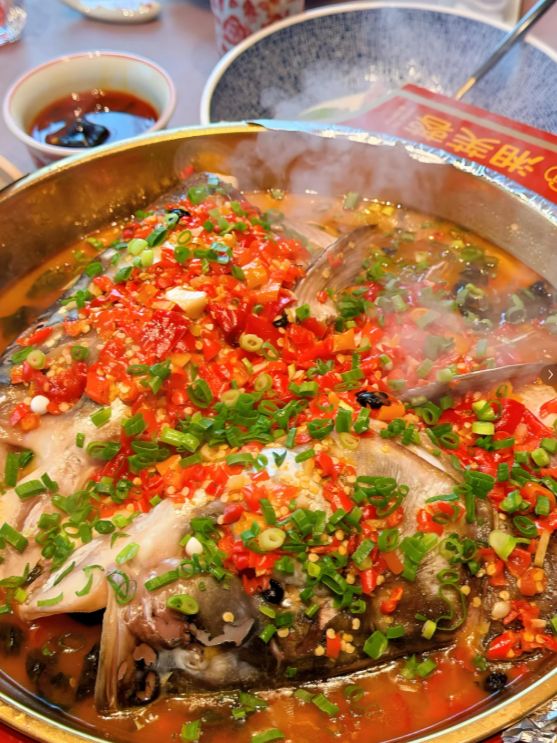 当这道菜上桌时,瞬间便能吸引所有人的目光。热气腾腾的鱼头上覆盖着一层厚厚的剁椒,红与白的鲜明对比,让人食欲大增。凑近一闻,剁椒的香辣味与鱼头的鲜香味交织在一起,直钻鼻腔,撩拨着人们的味觉神经。
