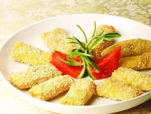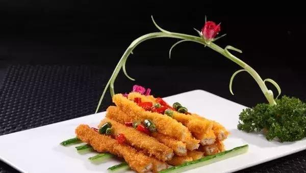 此菜要现点现做,因为放置时间太长会出水,造形塌了。此菜中沙拉酱的作用是增加酸口,卡夫奇妙酱的作用是增加稠度。此菜炸完后里面的馅是温的,一嚼浆汁会流入口中,口感不错