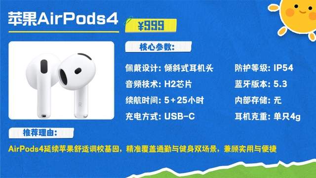7.苹果AirPods4:入耳式耳机
