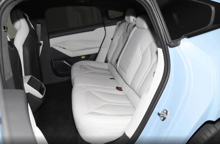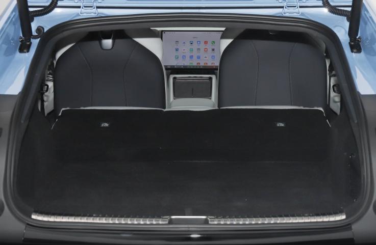 尺寸方面,新车长宽高对应5017x1970x1427mm,轴距3008mm,通过0.52的轮高比,塑造出宽体低趴的轿跑姿态,并兼顾0.201Cd低风阻系数,兼顾续航和高速行驶稳定性。不过溜背式造型导致后排头部空间略显局促,身高1米8左右的男生坐在二排时,容易感到头部空间压抑,腿部空间则处于一个中等表现。另外掀背式尾门设计开口较小,后备箱纵深不足,若要拉一些大件物品,算不上很方便。