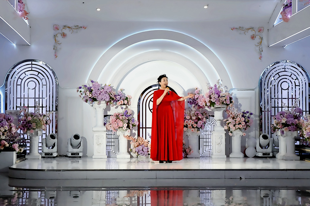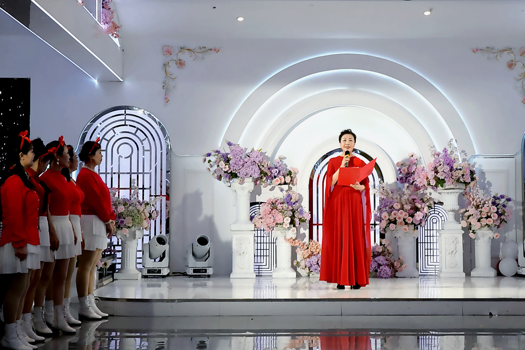 尊敬的各位来宾,亲爱的飞霞流云艺术社的家人们,朋友们,大家好!衣袂翩跹,踏出四季芳华;步履铿锵,舞出岁月荣光。我是主持人李慧萍:
