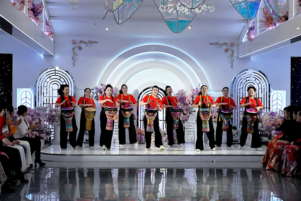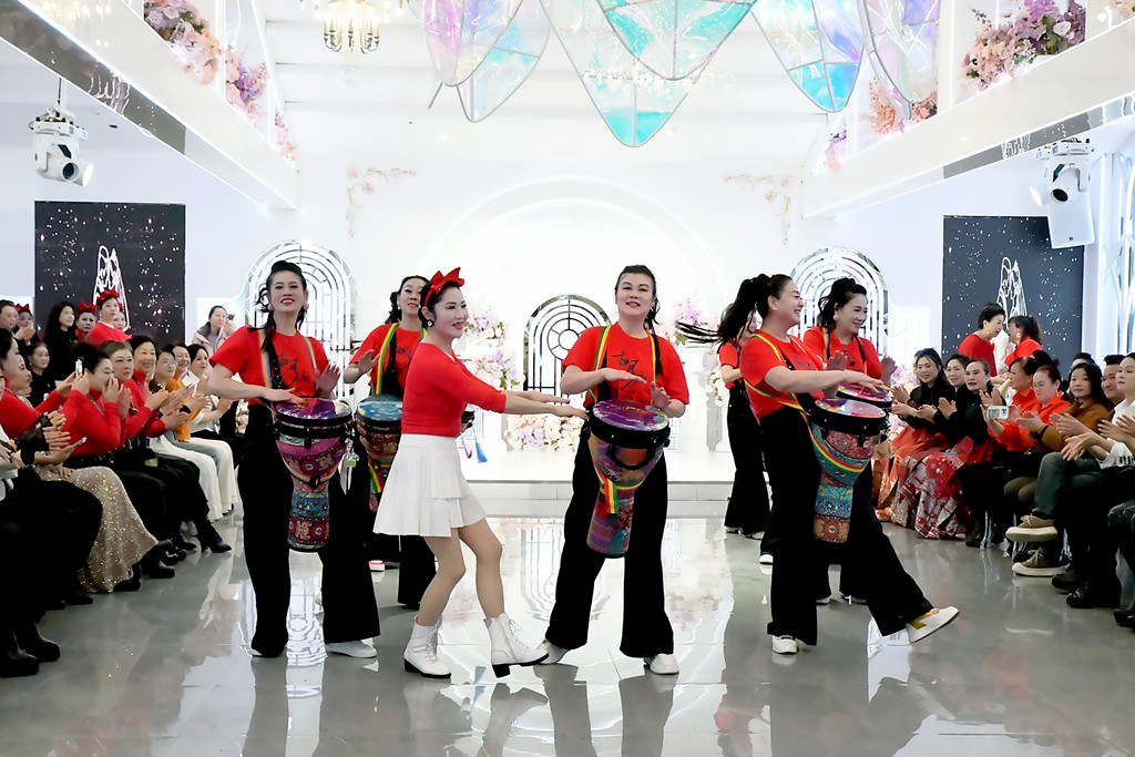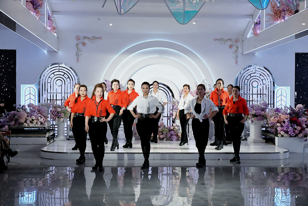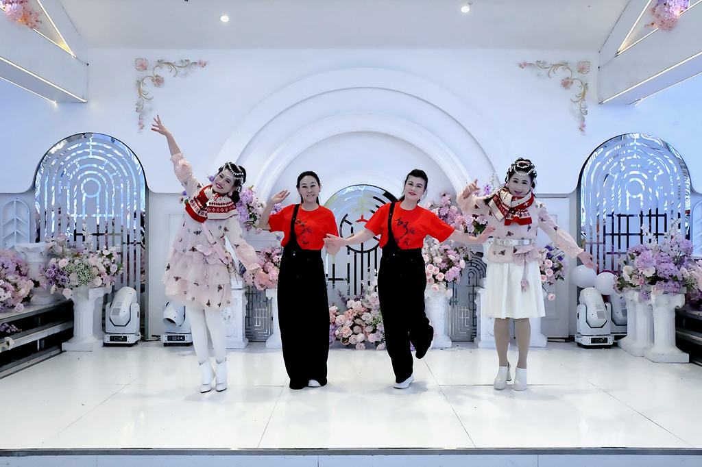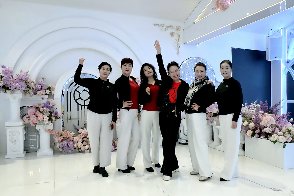 这一年我们一起练台步,排节目,累,但快乐着.从舞台上的生涩到如今的从容,我们不光收获了更好的姿态。更收获了健康和友谊!
