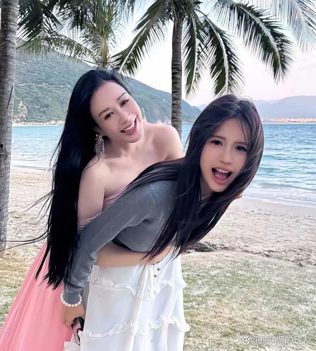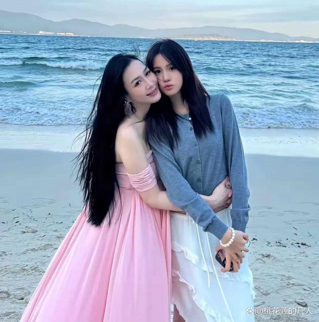 钟丽缇晒和小女儿的海边母女照,真是视觉盛宴。