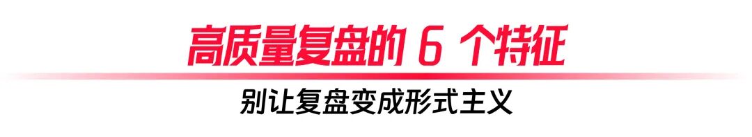 很多人把复盘做成 “走过场”,写了一堆文字却毫无改变。真正有效的复盘,都具备这 6 个特征: