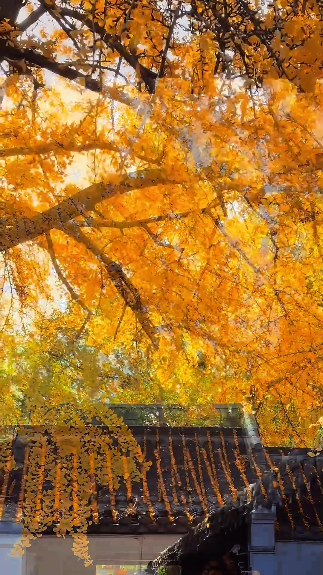 “落叶缓扫”的政策让金色落叶铺满黛瓦与地面,形成典雅的金色世界,这一传统已坚持20多年。