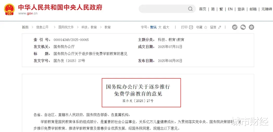 8月5日,国务院发布《关于逐步推行免费学前教育的意见》。明确提到: