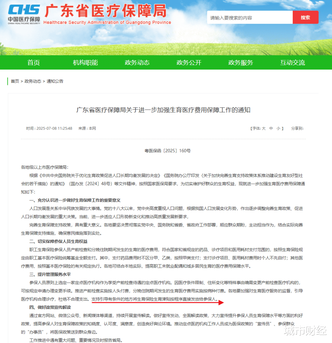 7月份,广东省发布了《广东省医疗保障局关于进一步加强生育医疗费用保障工作的通知》,明确提出: