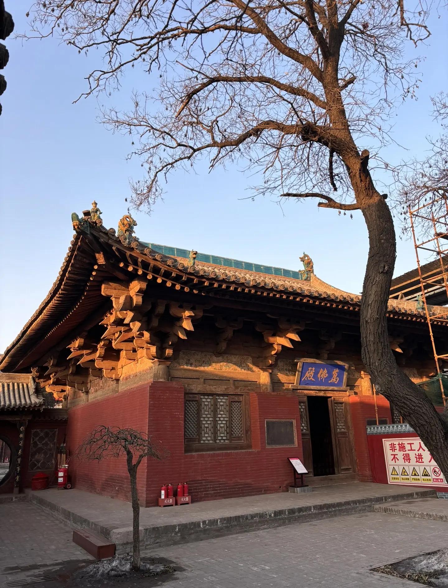 始建于五代北汉天会七年(963年),原名“京城寺”,后因避讳更名“镇国寺”。寺院格局暗藏玄机:中轴线错位布局(万佛殿偏离中心0.5米)——考古证实此为唐代“伽蓝七殿”遗风,隐喻“佛法无边,不囿方寸”。全寺精华尽在万佛殿: