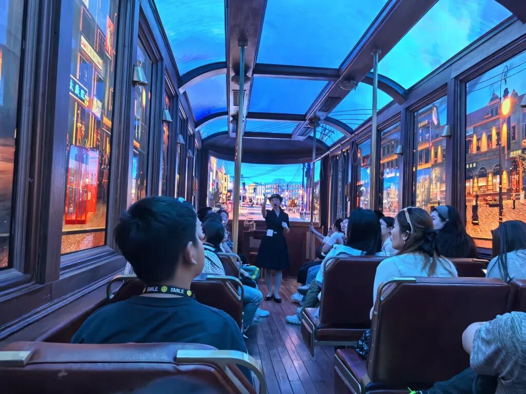 而那辆停靠在中山路上的“时空列车”,将4D数字电车项目将科技与人文完美融合——外表复古的绿色车厢内,16K环幕影像带给乘客的,不仅是一次感官盛宴,更是一场文化寻根。据悉,电车项目规划了四大主题,目前已上线的《百年中山路》通过全息数字技术重现上世纪30年代街景,让历史在数字世界中复活。