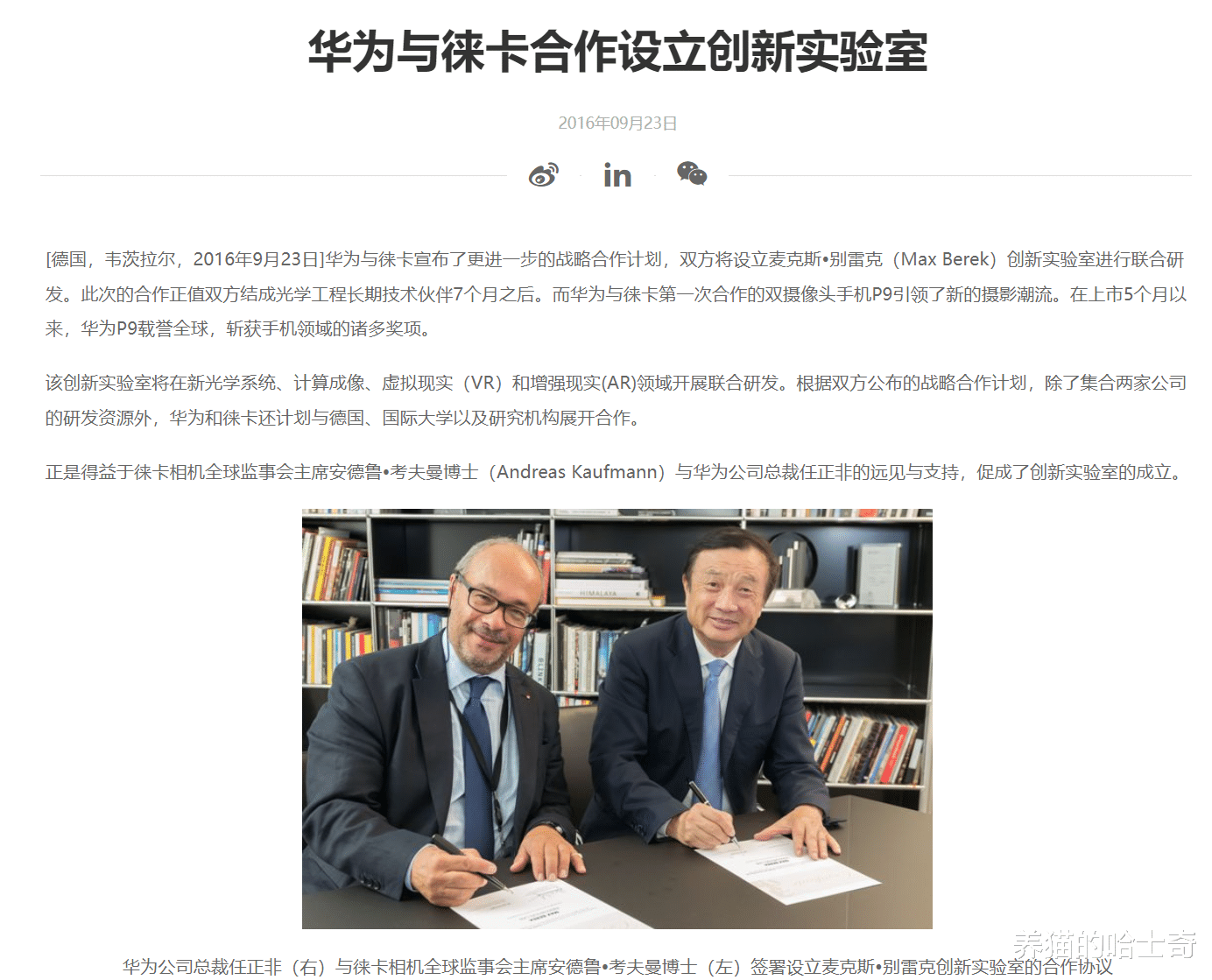 还是在2016年,华为P9发布后不久,华为宣布了双方更进一步的战略合作计划,双方将设立麦克斯•别雷克(Max Berek)创新实验室进行联合研发。该创新实验室将在新光学系统、计算成像、虚拟现实(VR)和增强现实(AR)领域开展联合研发。根据双方公布的战略合作计划,除了集合两家公司的研发资源外,华为和徕卡还计划与德国、国际大学以及研究机构展开合作。