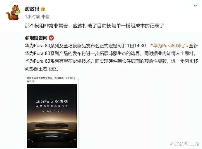 比起粉丝的自嗨来自友商的认可更能体现价值,华为Pura 80的这个一镜双目超大底双长焦技术确实是目前手机影像技术的一个突破。