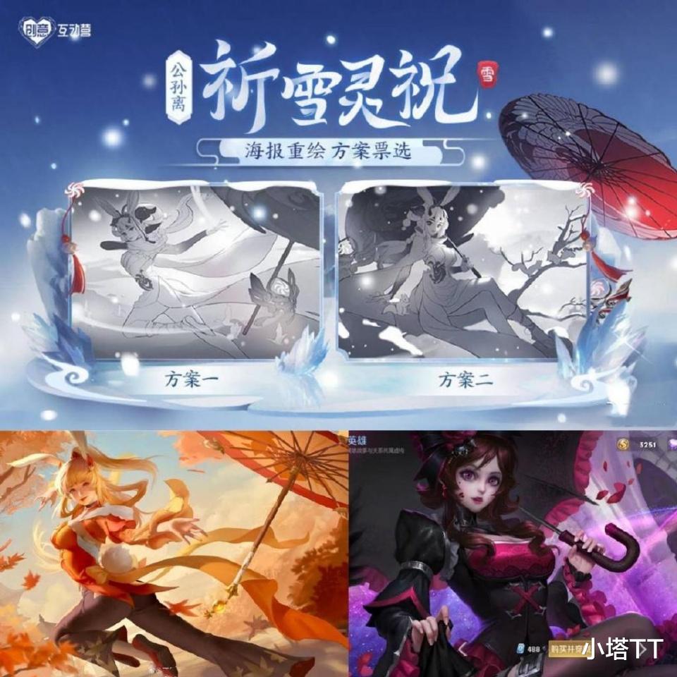 除了建模,阿离的祈雪祝灵也要进行调整,其中原画会进行重做,但重做的两个原画选项都不怎么样,最大的原因就是姿势和已有的原画一模一样。尤其是方案二和露娜的伴生完全一致,最后还成为了最终方案,一时不知道要如何评价。