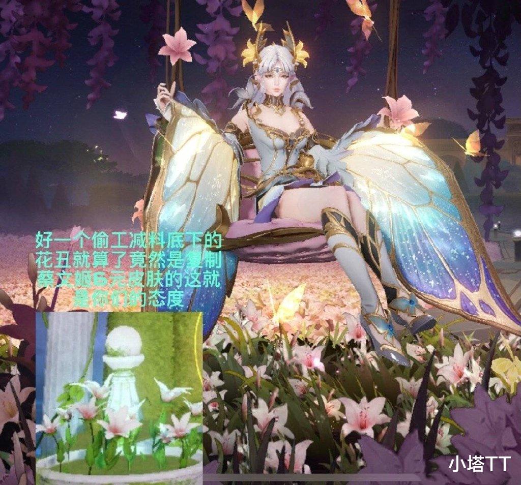 最近被大家吐槽最多的皮肤那一定是仲夏夜之梦和金色仲夏夜的优化,主要吐槽点有两个,一是建模太丑,另一个是大招太素。但最近大家发现,现在官方连背景素材都重复使用,这次金色仲夏夜脚下的花朵就是蔡文姬六元皮肤中出现过的花朵,完全没有变化,这也太敷衍了吧?