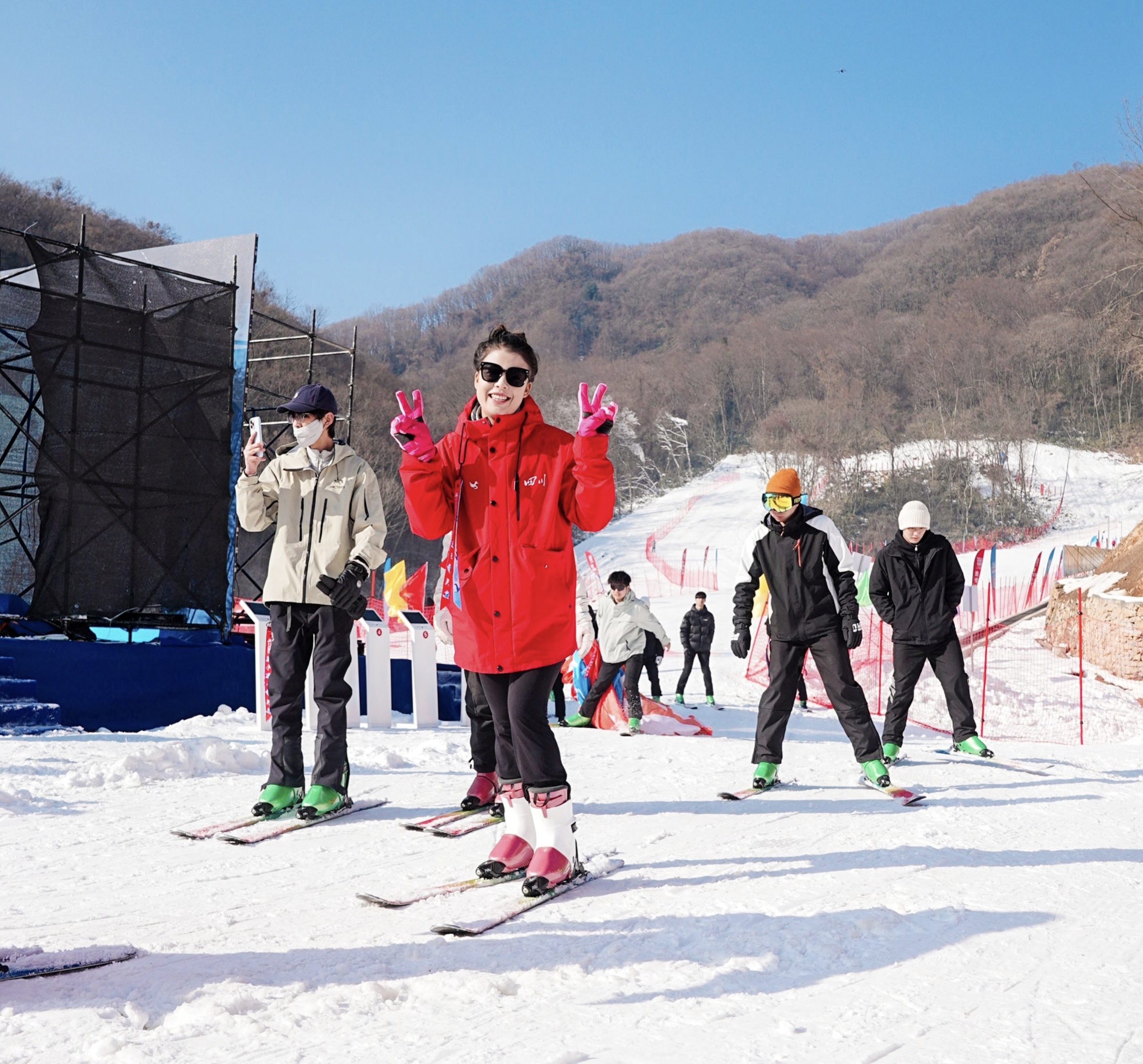 竞技区更是热火朝天。陆地冰壶在雪面上滑出清脆声响,每一次精准撞击都伴随着喝彩;雪地足球赛里,孩子们脚踩雪鞋灵活过人、射门,欢呼声震彻山谷。最引人注目的是“女皇主题雪地寻宝”,游客们手持定制地图,在冰雪世界中寻找广元女皇文化的印记。而狮灯、牛灯等川北民俗表演,更让雪场平添了几分地道年味。