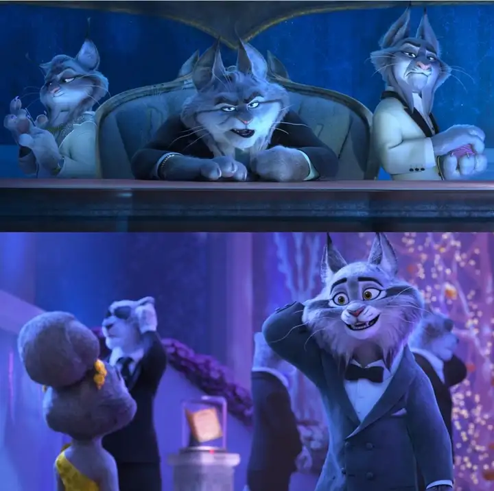 除了把“肉食动物和草食动物之别”升级到了“哺乳动物对爬行动物的嫌恶”外,本次电影里的反派林雪猁家族,也明显增加了其身上的“剥削阶级”属性。