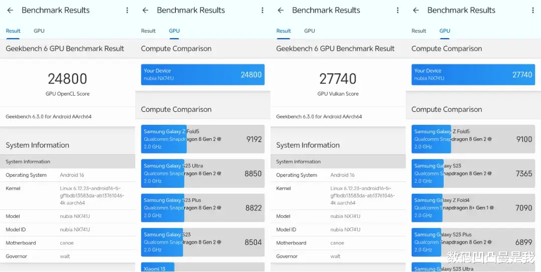 GPU测试有OpenCL和Vulkan两个模型选择,结果分别为2.48万和2.774万,同样是非常强悍的存在,可见第五代骁龙8至尊版移动平台的提升不是一星半点。