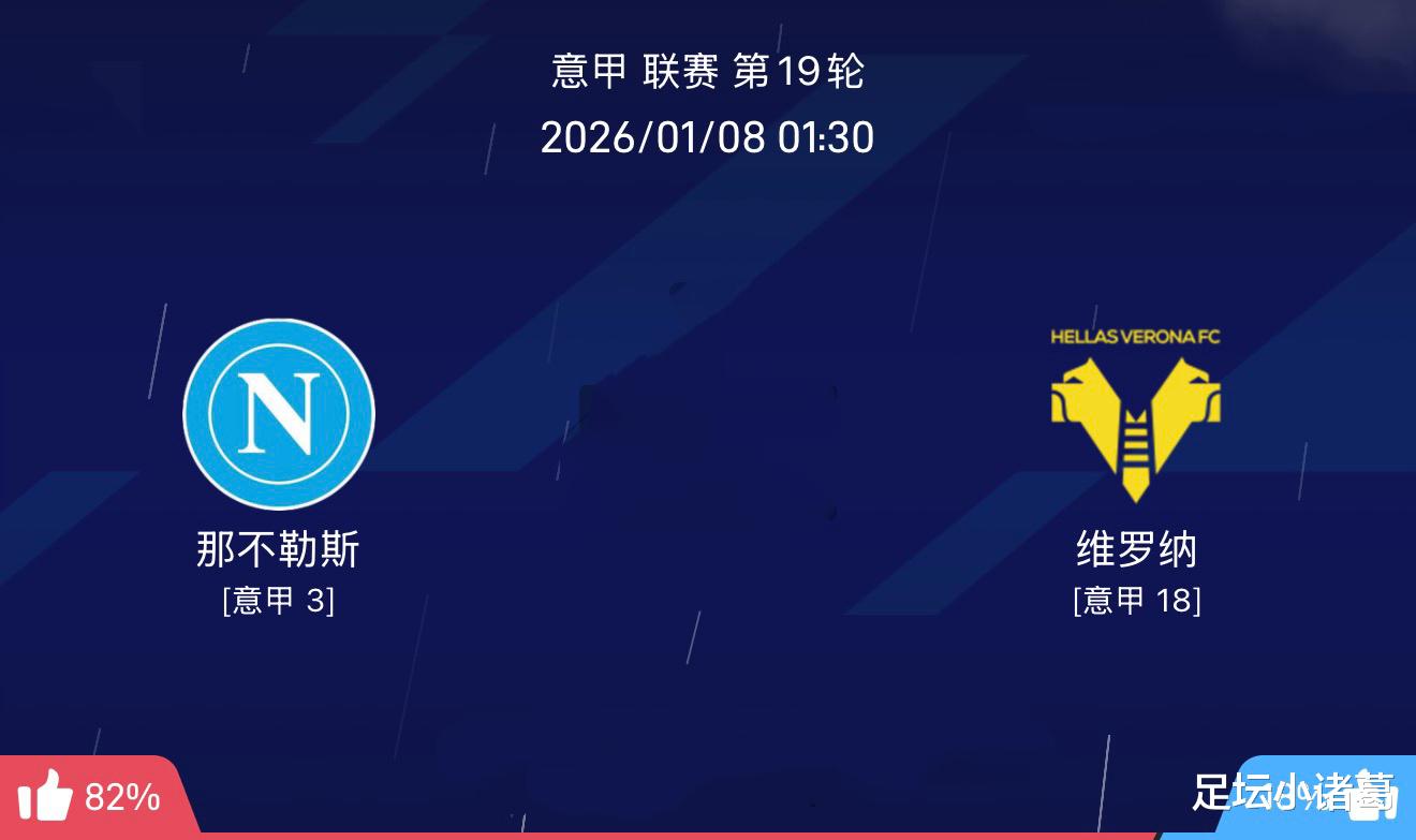 战术打法:那不勒斯主打卡位 4-3-3 传控阵型,核心思路是 “高位压迫 + 边路突破 + 定位球攻坚”。场均控球率超 60%,传球成功率 88%,边路突破与肋部穿插是主要进攻方式,定位球得分占比高达 34%,高空球优势位列意甲前三。针对维罗纳防线残缺、客场抗压弱的短板,将通过持续控球施压,结合边路传中与中路后插上创造射门机会,且球队 “先进球必胜”,11 次先拔头筹全部取胜。维罗纳预计摆出 4-2-3-1 极致防反阵型,核心战术是 “密集防守 + 快速反击 + 定位球偷袭”。球队依赖前锋卡普拉里的反击速度制造威胁,但中场创造力不足,阵地战攻坚能力薄弱,进攻过度依赖边路反击。客场控球率预计不足 40%,难以组织有效攻势,更多依赖门将扑救与防线死守,定位球进攻占比 20%,是唯一可能破局的手段。