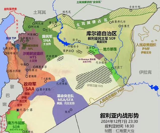 但是看到这个示意图,整个叙利亚被各种反对派控制,后面的势力是西方国家,土耳其,以及各种分裂势力,你们觉得真的有未来吗?