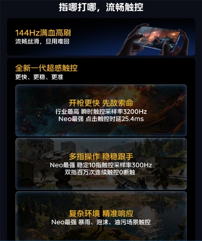 在这块2K京东方Q10+屏幕上,京东方2K TLTPO技术,144Hz满血高刷,带来的丝滑程度堪比高端游戏本,2592Hz高频PWM调光,搭载圆偏振光护眼技术+悦目护眼2.0更是解决了长时间游戏的眼睛疲劳问题。更强闪充续航7500mAh蓝海电池超快闪充支持直驱供电,iQOO Neo11的电池不仅更加耐用,高强度使用电池寿命也得到提升。