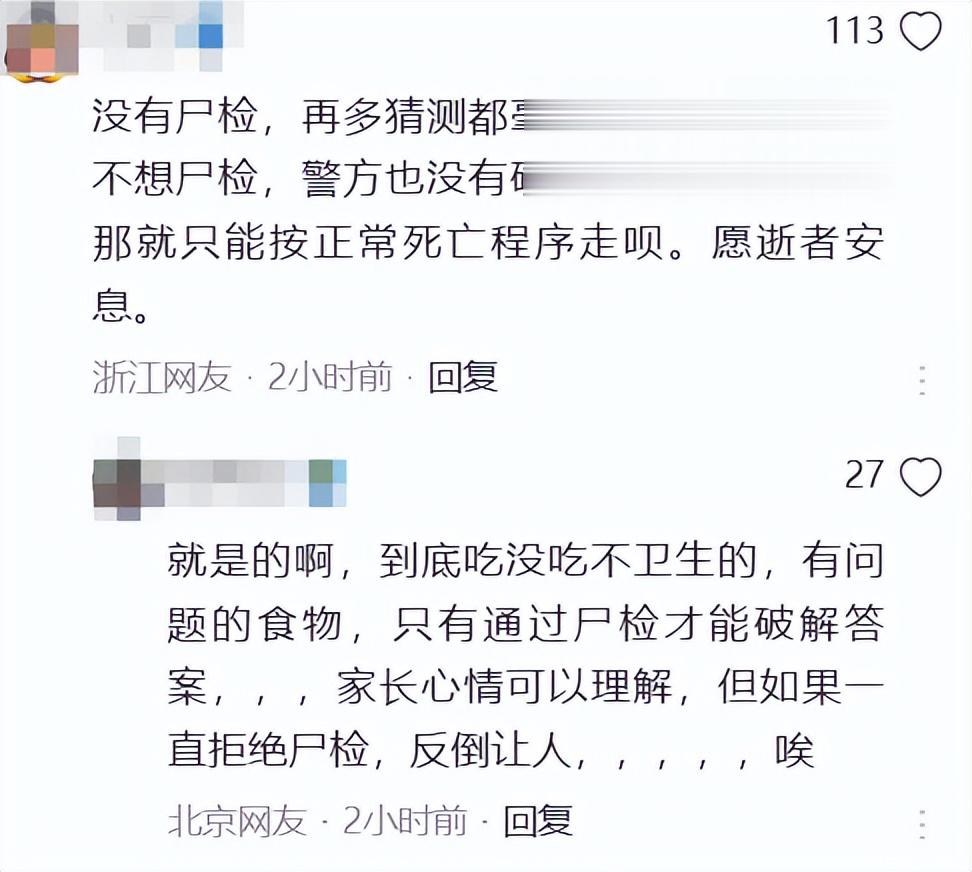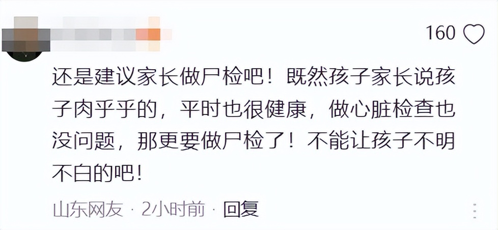 对此,有网友表示:“既然孩子生前很健康,没有其他疾病,那就更应该做尸检了,不能走的不明不白。”