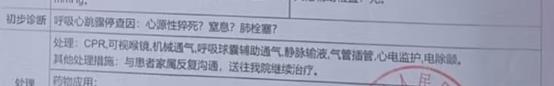 医院初步诊断是呼吸心跳骤停,病因不明。死亡证明书上写的死因是“其他”,出院诊断一栏里,虽然列出了爆发性急性炎,心源性猝死等猜测,但是都带着问号。