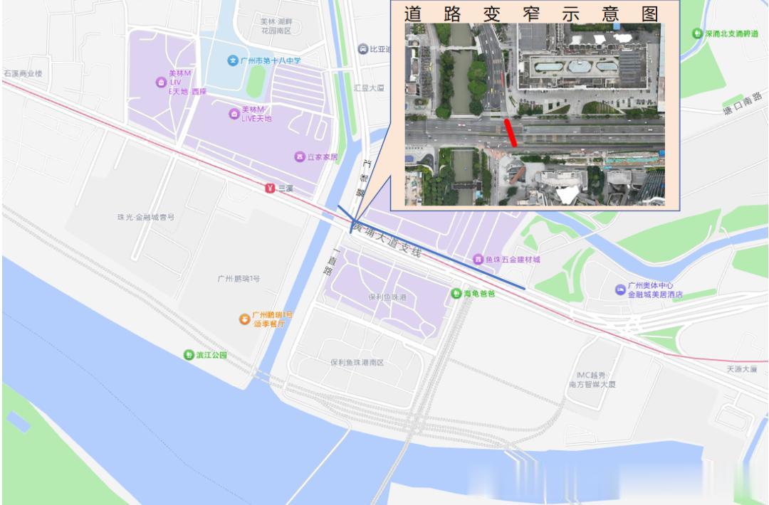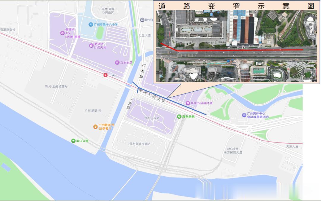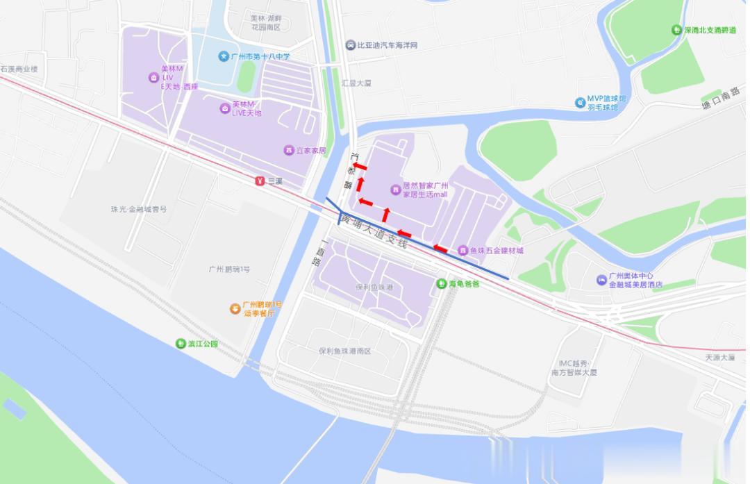 2、黄埔大道支线桥(汇彩路路口位置上下桥路段)三车道,在夜间施工需要占用一个车道,在行驶过程中请做好提前减速、变道、缓慢通行。