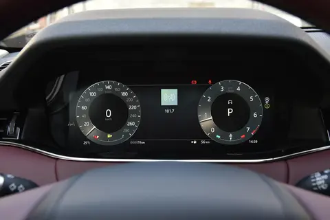 路虎内饰的豪华感果然没让人失望!整体设计简约规整,这可是路虎的标志性风格,摸得到的地方都质感满满。12.3英寸的全液晶仪表+11.4英寸的中控屏,科技感直接拉满,操作起来也顺手。最惊喜的是座椅,用的是温莎真皮材质,摸上去软乎乎的,坐久了也不觉得累。还有前排那个对开式扶手,细节处都透着精致。