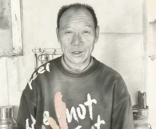 我和奇奇爷认识其实是偶然,因为他家没有电视没有智能手机,他也不识字。