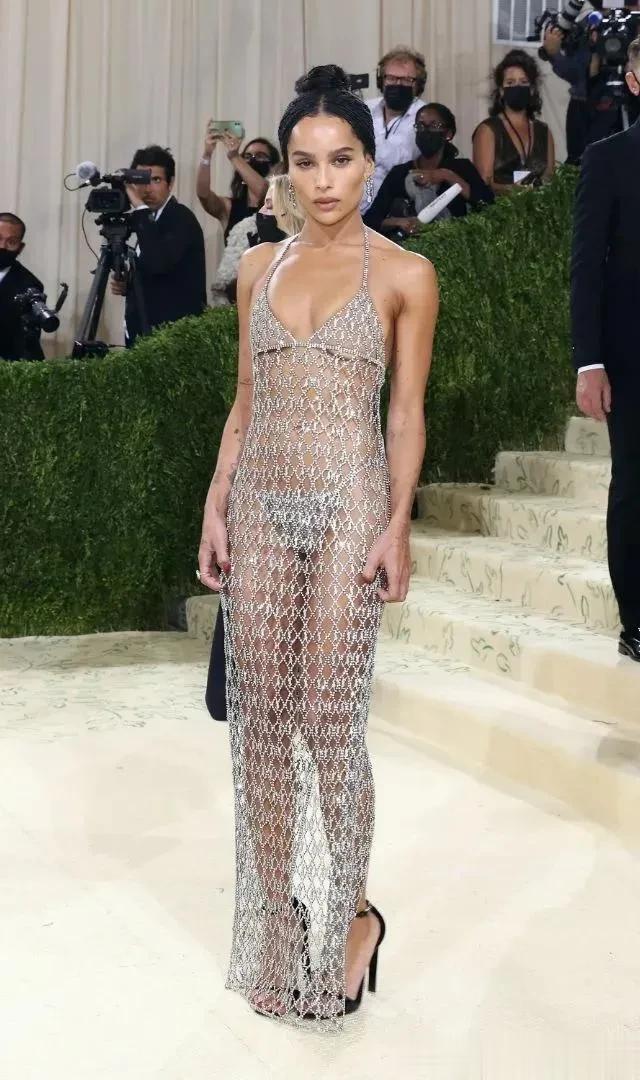 最令人难忘的 佐伊·克拉维茨 (Zoe Kravitz) 身穿 Saint Laurent by Anthony Vaccarello 水晶吊带裙。