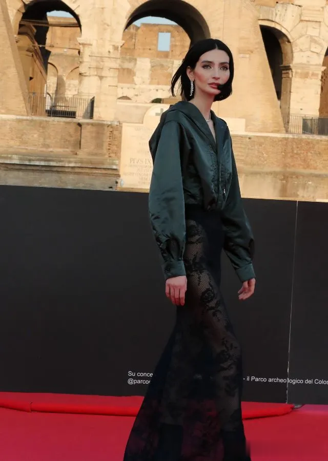 Meadow Walker 的这套 Alaïa 套装由透明黑色半身裙和丝质祖母绿纽扣衬衫组成,为裸装潮流增添了一种老式好莱坞的优雅气息。