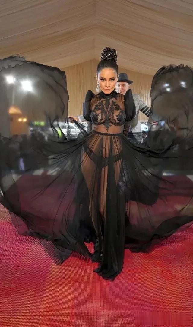 凡妮莎·哈金斯 (Vanessa Hudgens)身穿这件引人注目的黑色 Moschino 泡泡袖礼服亮相,在 Met Gala上吸引了所有人的目光。