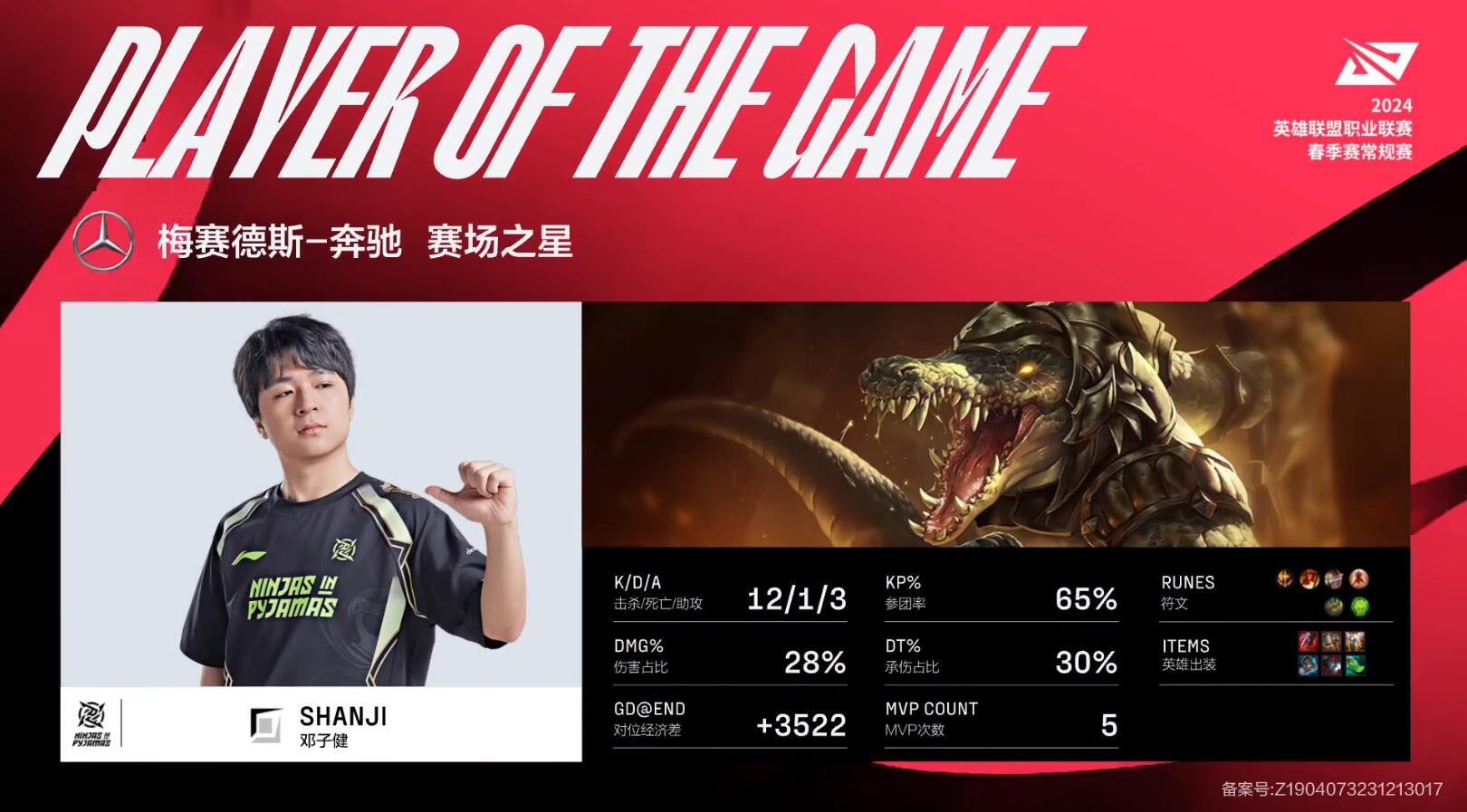 MVP给到了Shanji哥操刀的大鳄鱼。