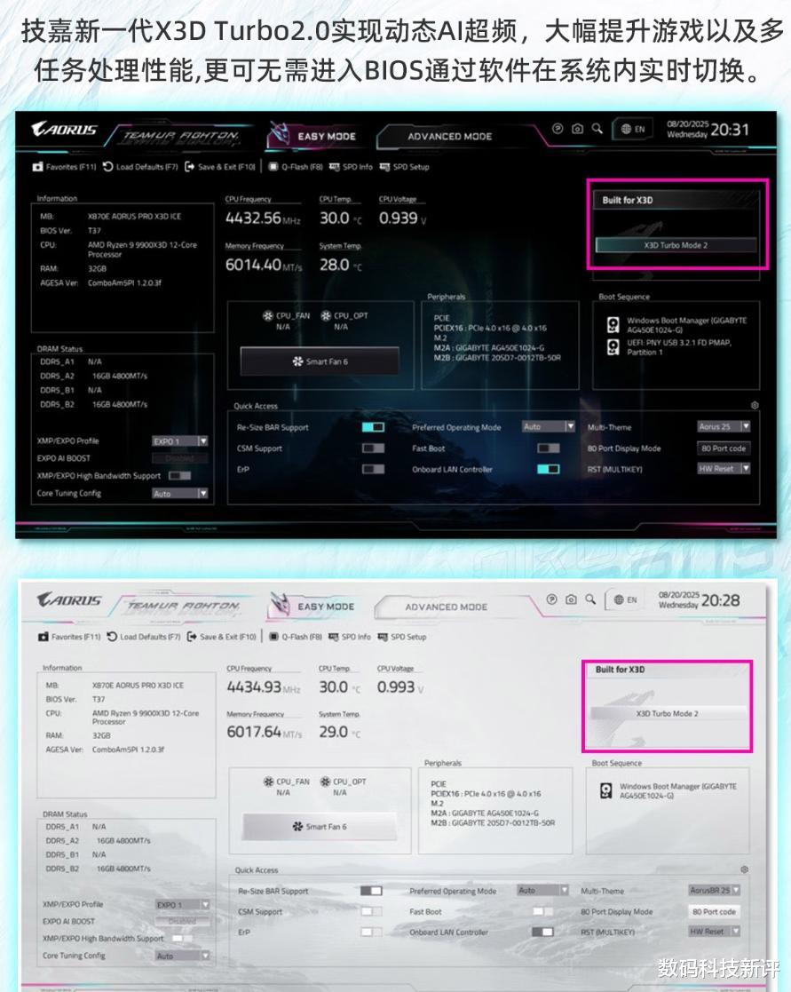 在此背景下,技嘉正式推出专为该系列处理器量身打造的X870E AORUS X3D系列主板,首发包含X870E AORUS MASTER X3D ICE(超级冰雕)与X870E AORUS PRO X3D ICE(电竞冰雕)两款型号。该系列产品通过自主研发的核心技术、强化的硬件架构与人性化的设计革新,不仅实现了至高25%的游戏性能提升,更重新定义了高性能AMD平台的使用标准,为专业用户与发烧友提供了兼具性能、稳定性与便捷性的解决方案。