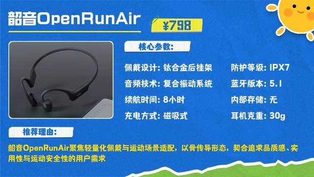 韶音OpenRunAir精准覆盖各类运动场景,适配看重开放聆听安全性、追求长时佩戴舒适度与品质耐用性的运动爱好者,是运动场景下兼具实用性与品质感的优质音频之选。
