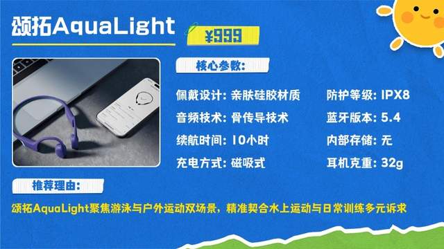 颂拓AquaLight精准适配游泳与户外运动场景,尤其契合重视水下听音体验、追求佩戴稳固性与防水耐用性的运动爱好者。