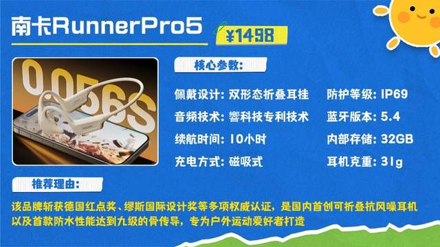 南卡RunnerPro5是品牌十余年技术深耕的旗舰力作,斩获德国红点奖、缪斯国际设计奖等多项权威认证,更成为尼日利亚驻华大使馆指定用品,收获傅园慧、孙杨等顶尖运动员及运动圈层的专业口碑双重背书,是专为骑行爱好者打造的抗风噪与安全听音旗舰装备。