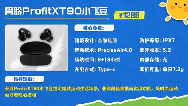 骨聆ProfitXT90小飞豆以超轻便携的骨传导形态为核心亮点,兼顾颜值与实用功能,契合追求佩戴舒适感与便捷体验的时尚运动爱好者需求。