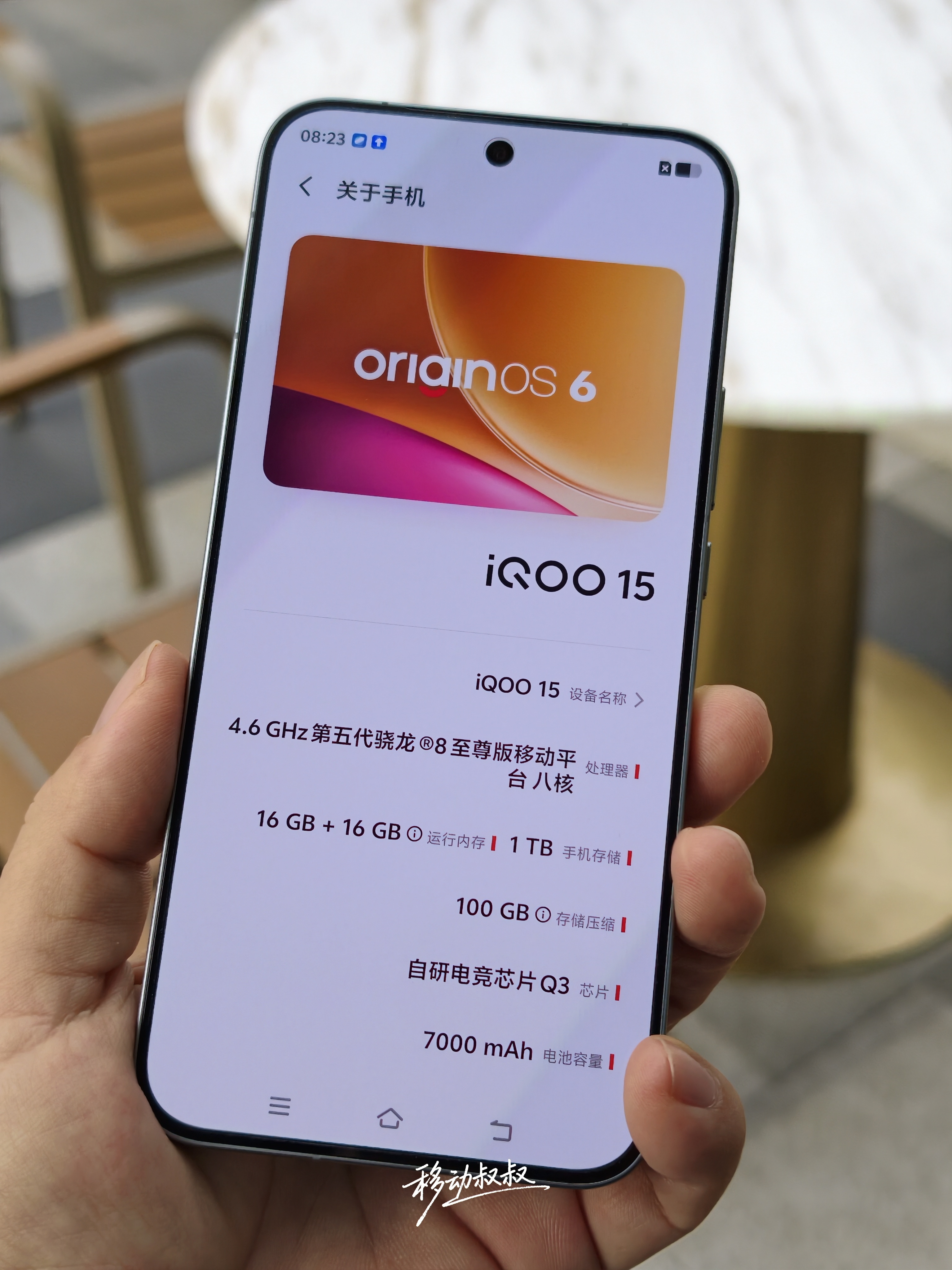 外围配置,该有的全有。23根天线矩阵、公里级无网通信、IP68+IP69、超声波3D指纹、蓝牙6.0、双频GPS+三频北斗、红外遥控、NFC、对称立体双扬、RGB能量光环……真要鸡蛋挑骨头的话,76.8mm的宽度和221g的重量,对小手党可能不是很友好,希望蓝厂考虑一下出个iQOO 15 Pro mini小屏旗舰,肯定又是一款真香机。
