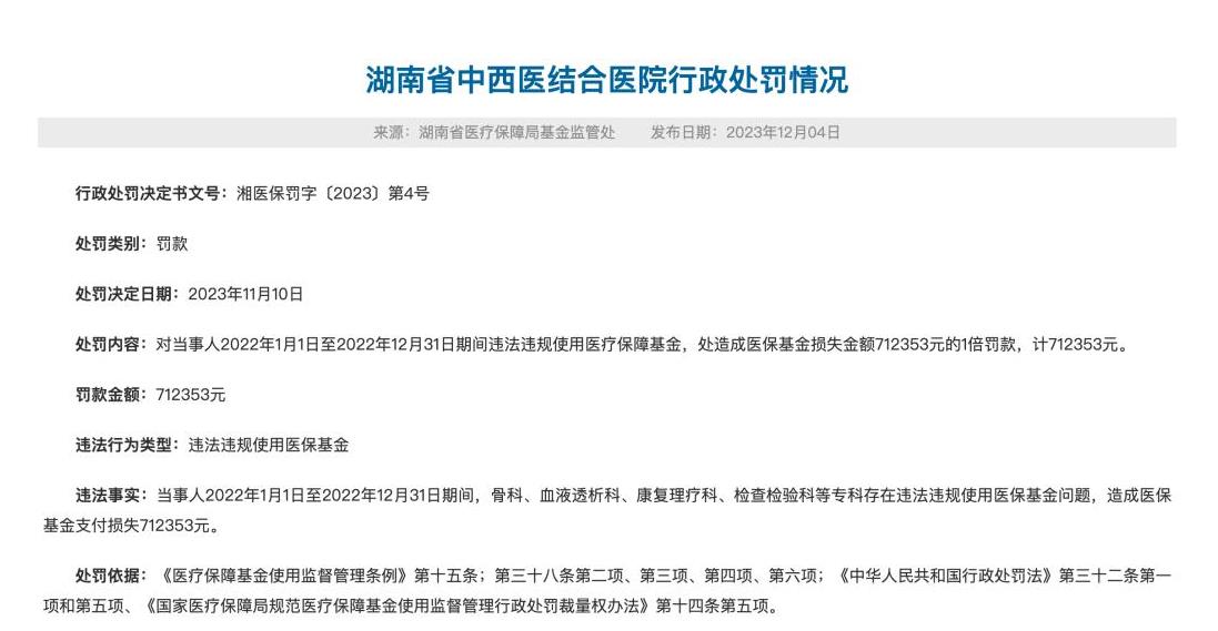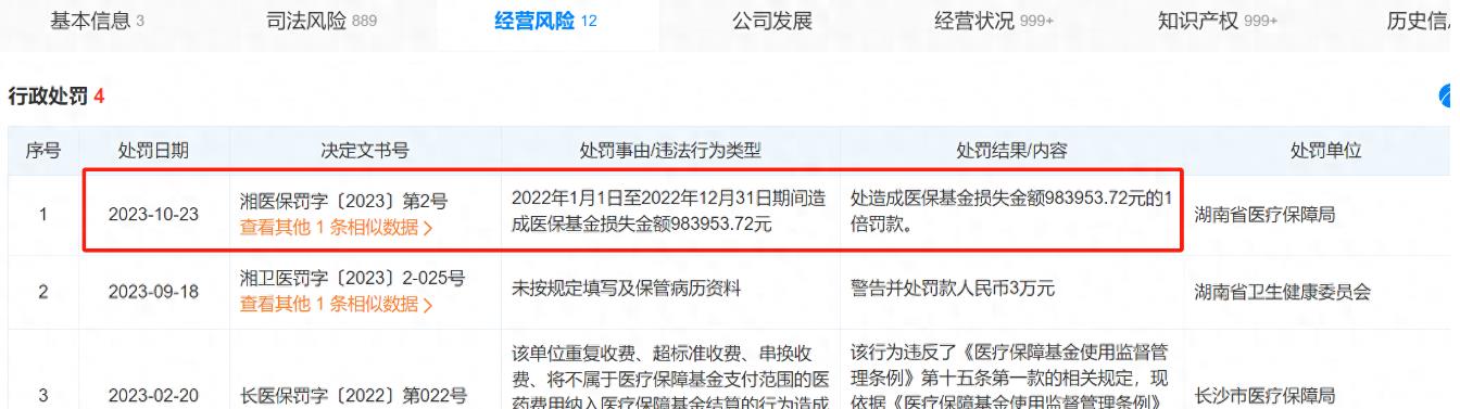 对于医院的违规行为,湖南省医疗保障局采取了严厉的处罚措施。根据处罚决定日期,湘雅医院被处以罚款983953.72元,正好是医保基金损失金额的1倍,这一处罚力度可谓严厉而公正。